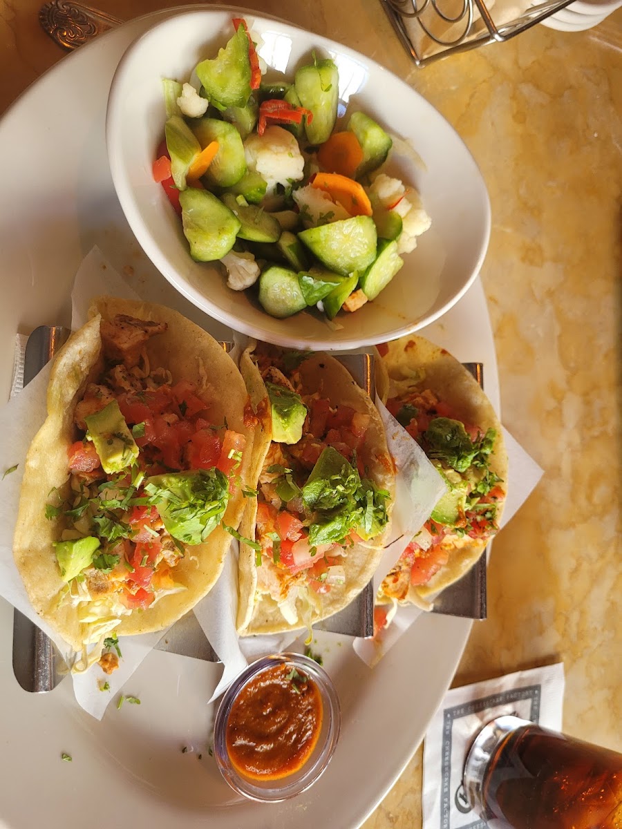 We ate here for lunch — the food is always just okay. I ordered the fish tacos and calamari as an appetizer; nothing special. But I come here strictly for the cheesecake, and it never disappoints! If you happen to like the food, consider that a bonus.